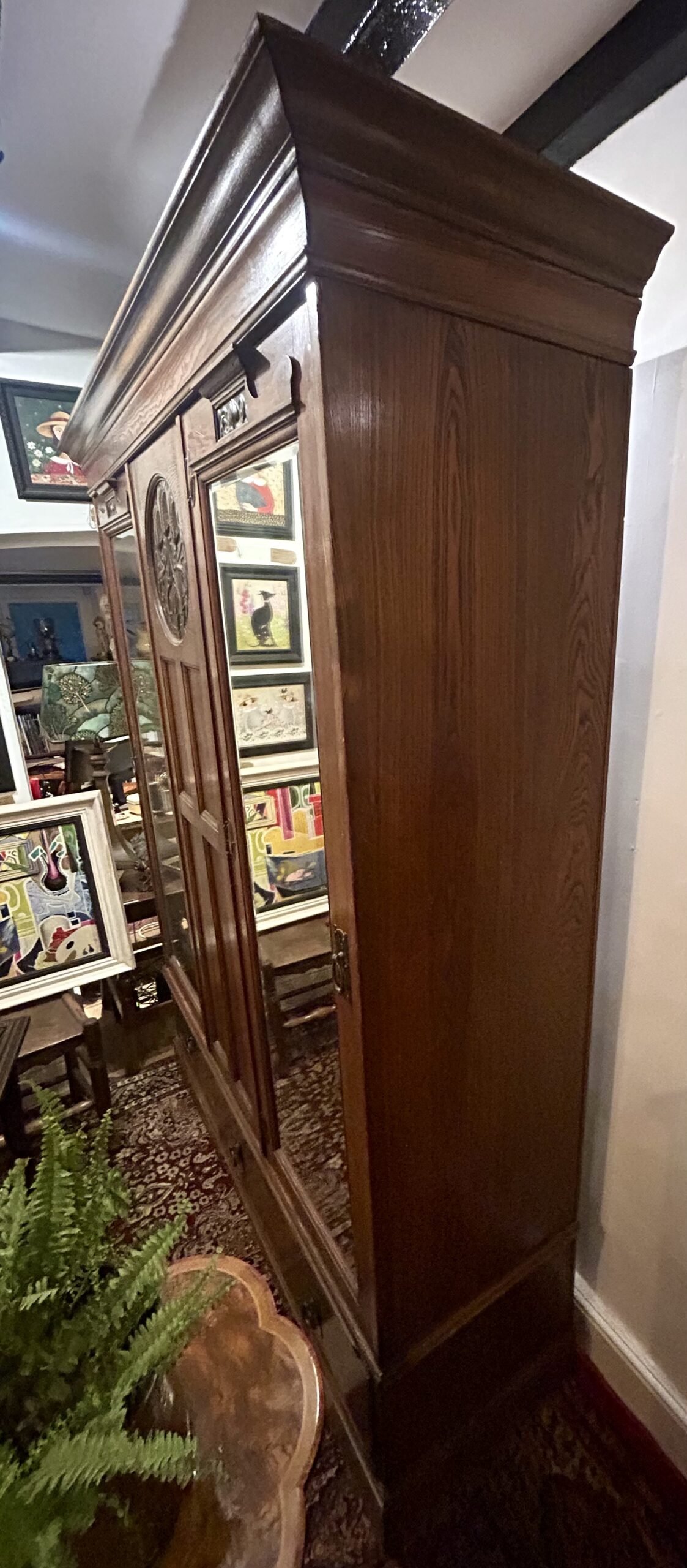 Breaks down completely into its component parts for transportation. Indeed, we understand that the wardrobe travelled with its first London owner to the USA when he was posted there in the course of his employment in the early 20th Century. Returning to London in later years, he brought back the wardrobe, where it remained within the original family until we acquired it.